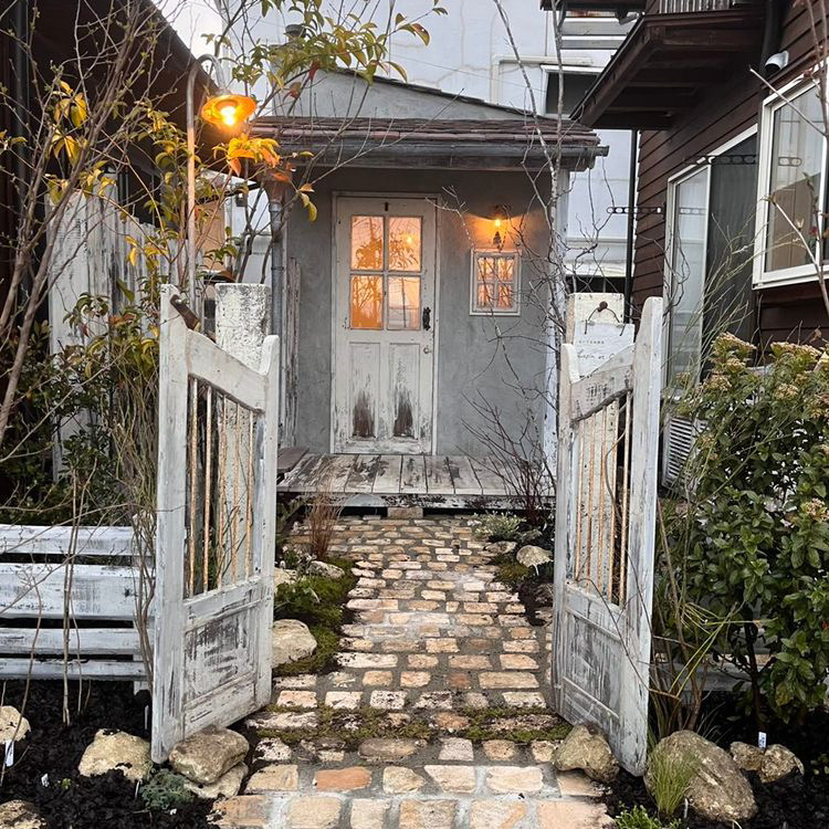フランス小屋の小さなお庭も完成しました。お庭も小屋と一体の世界観を作って頂きました。